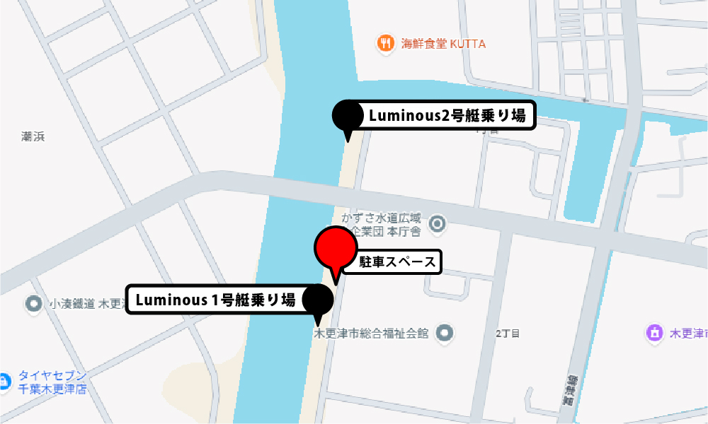 1号艇乗り場は、千葉県木更津市潮見2丁目付近の川沿いです。